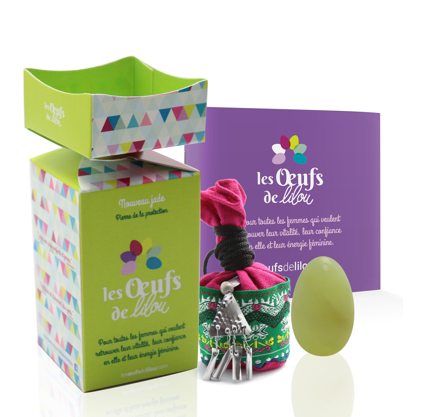 Kit complet Œuf de Yoni Nouveau jade PETIT PERCÉ, pierre de protection et apaisante, Les Oeufs de Lilou